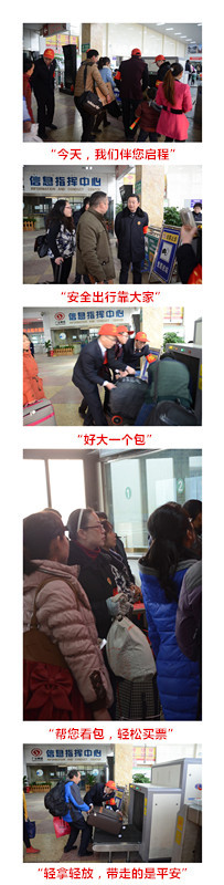 2月7日,星期六,距离春节还有十天。广元南河汽车站客流量已开始攀升,车站内外人流熙熙攘攘,旅客们背着大包小包,携妻带儿。广元市检察院20名党员志愿者活跃在车站售票口、安检口、大厅问询处,陪伴旅客们开启旅程。。。。。。