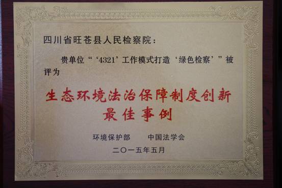 5月14日,由环境保护部和中国法学会共同主办,最高人民检察院等13家中央部门作为支持单位的生态环境法治保障研讨会在北京召开。四川旺苍县检察院“绿色检察”工作喜获全国“生态环境法治保障制度创新最佳事例”奖,受邀出席颁奖典礼。
