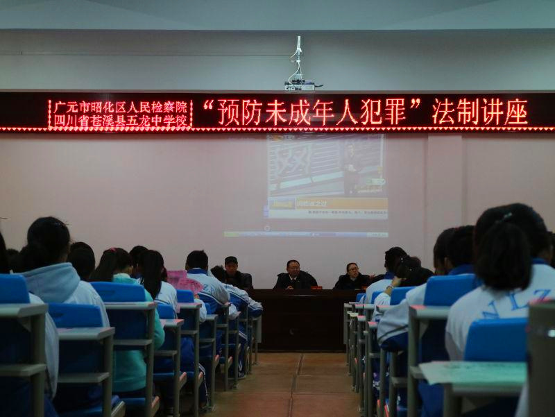 近日,广元市昭化区检察院给苍溪县五龙镇中学300余名师生上了的一堂“预防未成年人犯罪”法治课,拉开了昭化区检察院巡讲活动的序幕。