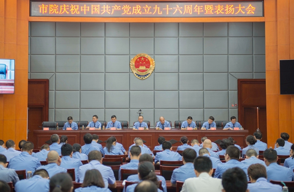6月29日,市检察院召开庆祝中国共产党成立九十六周年暨表扬大会,广元市检察院机关全体干警参加大会,会议由党组成员、副检察长莫小彪主持。