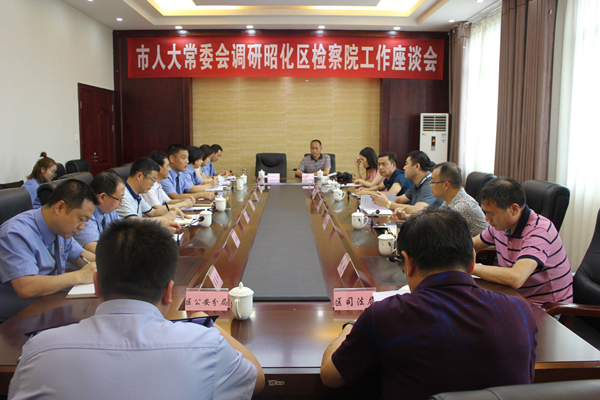 7月25日,市人大常委会内司工委主任谭林德一行5人到昭化区检察院调研公益诉讼、禁毒、未成年人检察以及推进司法体制改革工作。昭化区人大常委会副主任李江山,昭化区检察院检察长肖光志陪同调研,区委政法委、区公安分局、区司法局相关负责人以及基层人大代表、律师代表参加调研。