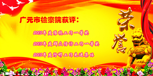 2月23日,中共广元市委办公室、广元市人民政府办公室印发《关于表扬2013年度全市维稳综治群众信访防邪工作先进单位的通报》,市检察院获评维稳工作一等奖、群众信访工作一等奖、防邪工作先进集体。