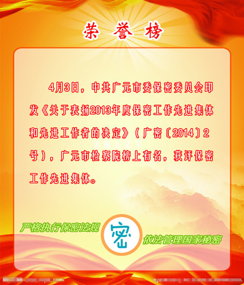 广元市检察院获评保密工作先进集体