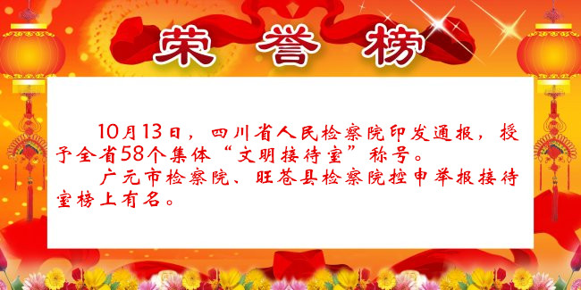 广元市检察院、旺苍县检察院控申举报接待室获评省级“文明接待室”