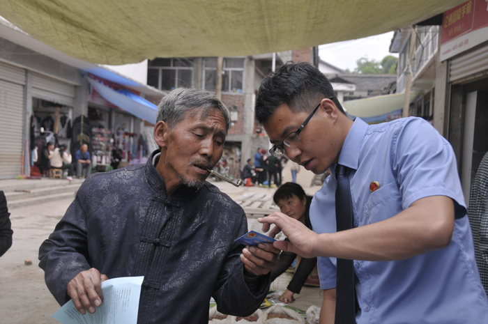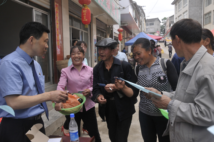 6月3日,朝天检察院部分干警利用乡镇逢场天,到麻柳乡、李家乡开展检务公开宣传活动,向当地群众分发阳光检务卡和检察机关职能职责介绍宣传单。