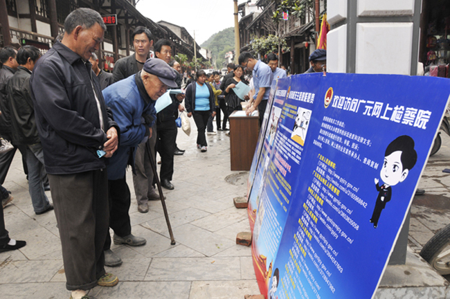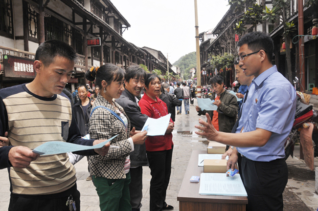 6月4日,朝天检察院检务公开宣传小组来到曾家镇,给镇上的群众宣传了检察机关职能职责,受到当地群众的欢迎。