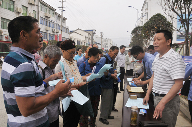 图说:群众及村、镇干部观看宣传资料