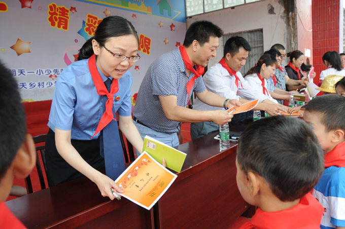 图说:检察干警参加朝天镇第一小学检校共建,欢庆六一活动