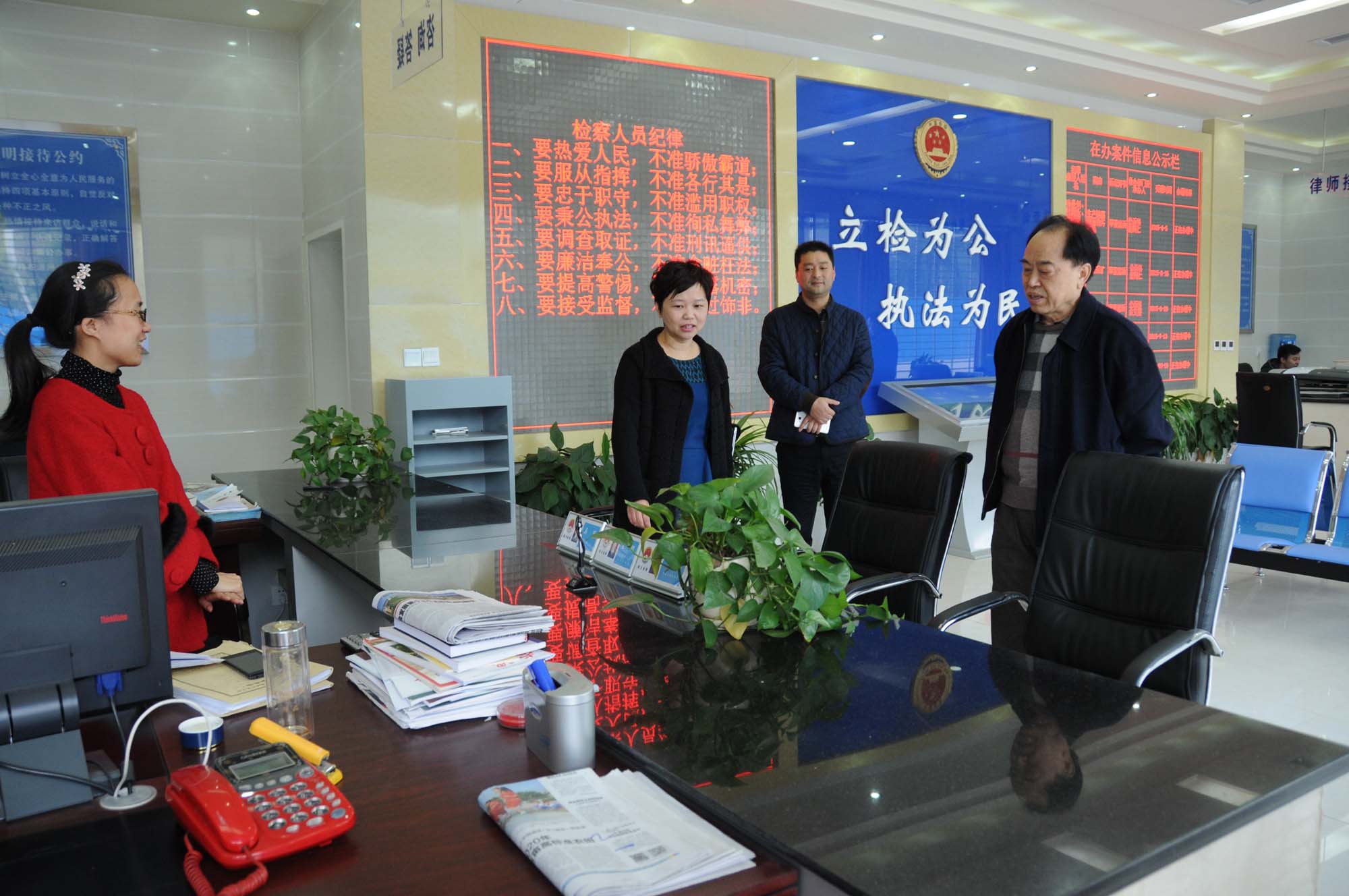 11月24日,原广元市检察院检察长李泰泉来到朝天区检察院,参观了朝天院阳光检务大厅,听取了李红检察长关于检察工作的情况介绍,看望了在院干警,与朝天新生代检察人亲切交谈,并寄语他们,青春是资本,但不是包袱,用活手中的资本,保持昂扬朝气,谦虚前行。