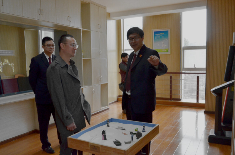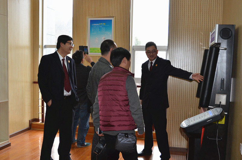 绵阳市院一行在利州区院党组书记、检察长王绍连陪同下实地参观了利州区院新落成的未检办案工作区,绵阳市院欧翔处长饶有兴致地体验了心理测试、身心反馈、虚拟方阵等相关仪器和设备的运行。