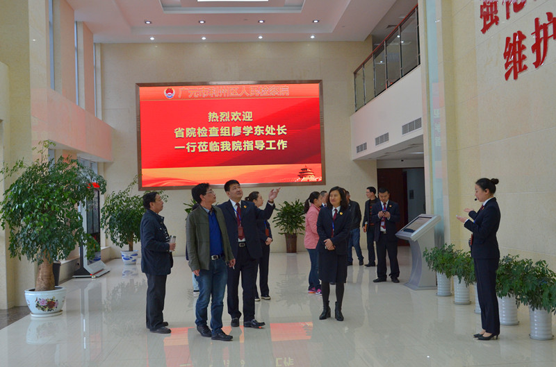 11月1日下午,省院技术处廖学东处长一行四人在市院专委王定珩的陪同下,到利州区院实地考察科技强检工作。此次考察系全省科技强检示范院验收活动的实地考察环节。考察组听取了利州区院关于科技强检工作的汇报,实地查看了科技强检相关设施及书面材料,重点对评审材料中缺项、漏项及存疑之处进行了核实,并对书面评审阶段的成绩进行了调整。廖处长一行对利州区院科技强检工作给予高度肯定,并提出了诸多宝贵意见和建议。