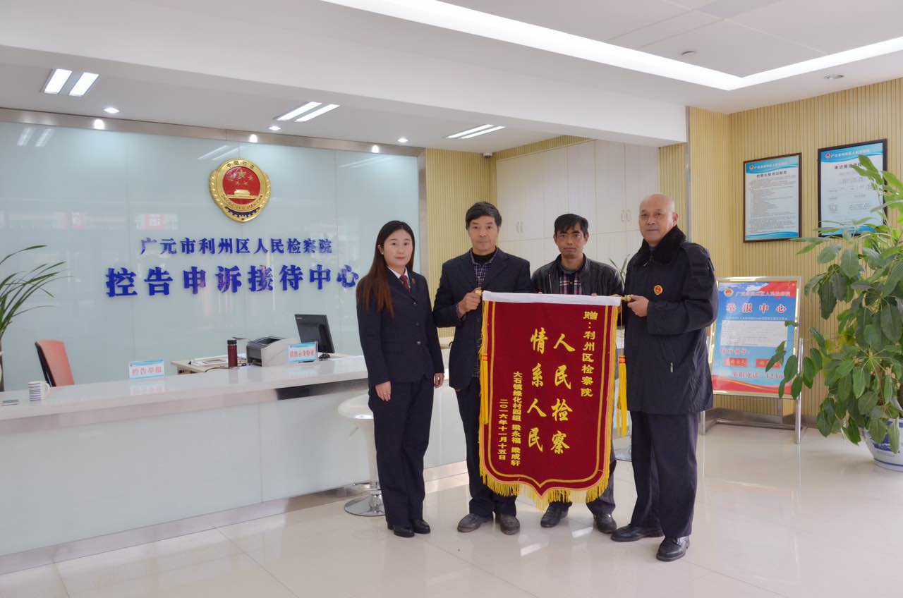 11月16日,一大早广元市利州区大石镇绿化村村民梁永福、梁成轩专程来到利州区检察院控申接待中心,将印有“人民检察,情系人民”八个金色大字的锦旗送到控申科检察官手中,真诚感谢检察机关在他们最困难的时候给予的关心和帮助。
