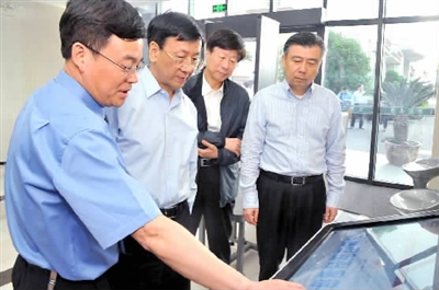 5月23日,曹建明到江苏省常州高新区(新北区)检察院调研。图为检察干警现场演示该院终结性法律文书公开和案件信息查询系统。本报记者程丁摄